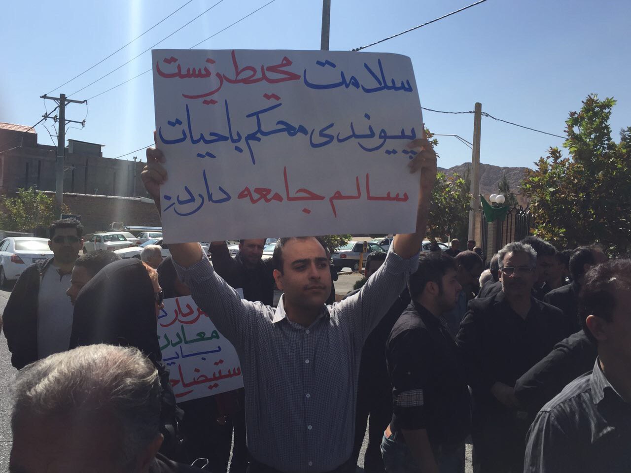 امروز هم گذشت، تعدادى از مردم در اعتراض به فعاليت مخرب معادن مقابل فرماندارى در روز پنجشنبه (٩٥/٩/١١) تجمع كردند و ضمن تأكيد بر فرامين مقام معظم رهبرى شعارهايى در جهت لزوم حفظ محيط زيست و تعطيلى معادن و اجراى رأى شوراى عالى معادن سردادند