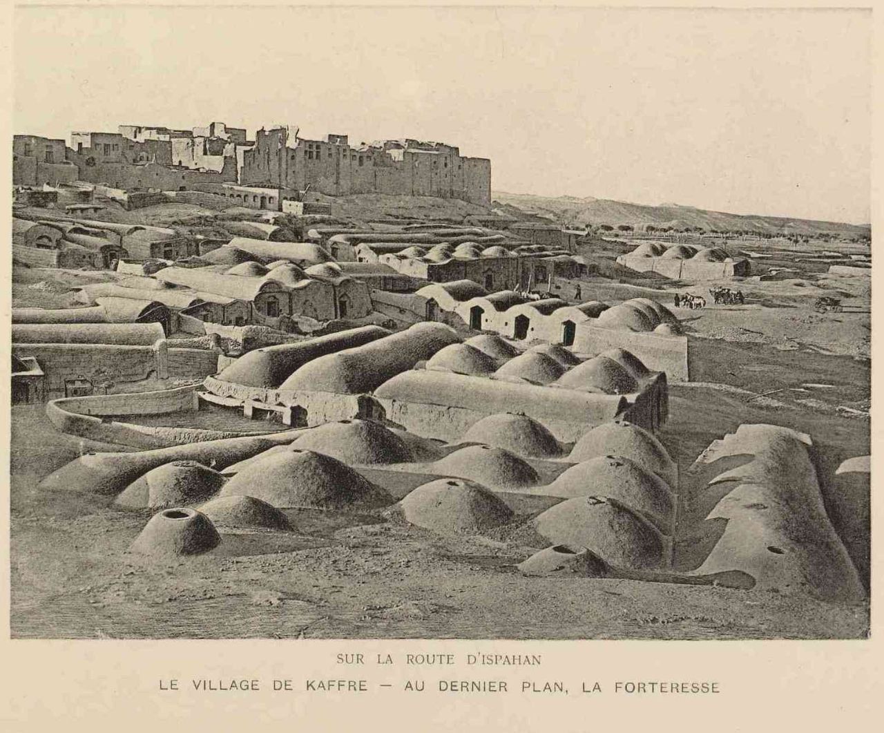 تصویری قدیمی از قلعه و کاروانسرای روستای خفر نطنز